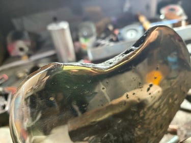 Le polissage pour un bronze brillant reflétant comme un miroir et la patine, art subtil et lent de la transformation de cette peau en texture de couleur.